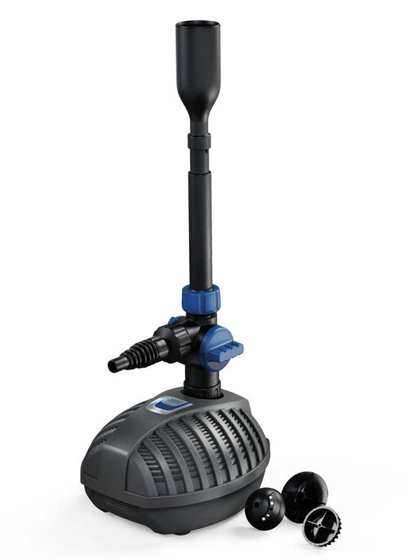An jeder der OASE Aquarius Fountain Set Wasserspielpumpen ist ein zweiter regulierbarer Ausgang komplett mit Universal-Stufenschlauchtülle zum Anschluss von Schläuchen mit unterschiedlichen Durchmessern vorhanden. Teichfreunde können an diesen zweiten Ausgang einen Wasserspeier anschließen oder den Schlauch zu einer Bachlaufquelle führen.