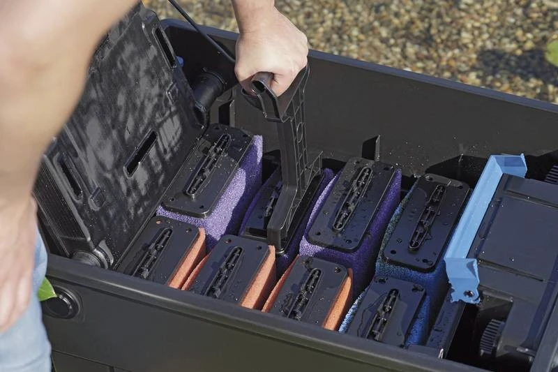 Durchlauffiltersysteme werden bei kleinen bis großen Naturteichen sowie Fisch- und Koiteichen eingesetzt. Sie stehen oberhalb des Wasserspiegels am Teichrand oder oberhalb der Bachlaufs, so fließt das Wasser drucklos, auf natürlichem Weg, zurück in den Teich.