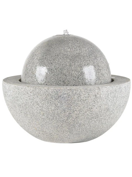 Das Wasser läuft über die gesamte Halbkugel. Dadurch kann dieser Brunnen auch effektiv als Luftbefeuchter in Wohnräumen