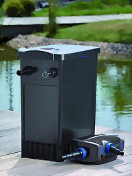 Im OASE Filtersystem FiltoMatic CWS ist ein UVC-Vorklärgerät ebenso integriert wie eine neuartige Schlammpumpe. Abhängig von der Temperatur des Teichwassers werden beide automatisch gesteuert. Das erhöht bedarfsgerecht die Filtereffizienz und hilft gleichzeitig, beim ganzjährigen Betreiben des Filtersystems Stromkosten zu sparen.
