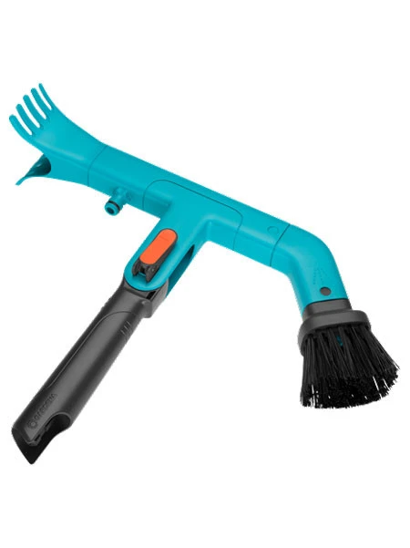 Stabile Borsten auf der einen Seite und zwei robuste Schaber aus hochwertigem Kunststoff auf der anderen Seite ermöglichen ein effektives Arbeiten. Der Handgriff erleichtert die komfortable Benutzung auch ohne Stiel. Die Reinigung der Dachrinne mit Wasser ist ebenfalls möglich. Dafür ist ein Original GARDENA System Anschluss integriert, an den der Gartenschlauch einfach angeschlossen werden kann. Um die Dachrinne bequem zu erreichen, kann der Arbeitswinkel mit dem Schnellverschluss individuell angepasst werden. Der Dachrinnenreiniger passt zu allen GARDENA combisystem-Stielen, wobei GARDENA für ein Arbeiten bis in Höhen von ca. 5 m die Teleskopstiele empfiehlt.