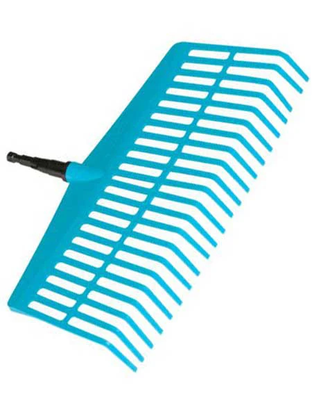 Stabile Zinken aus hochwertigem Kunststoff, angeordnet zu einer Arbeitsbreite von 43 cm, erlauben ein leichtes, handliches und