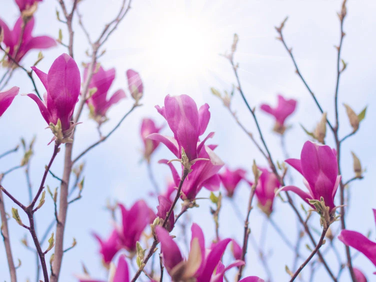 Ein wunderschönes Farbenspiel vollbringt die Magnolie ‚Vulcan‘. Sie bildet Blüten in leuchtendem pink und einem kräftigen rubinrot. Sie zählt zu den rotesten Magnolien überhaupt.