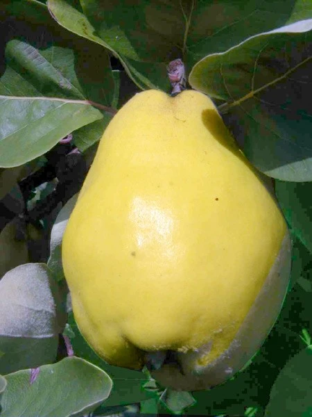| Frucht: | Frucht: leuchtend Gelb, geringe Filz-Behaarung, Fruchtfleisch creme-gelb. Geschmack: kräftiges Quittenaroma, kräftiger Geruch, ausgeglichen süßsauer. |