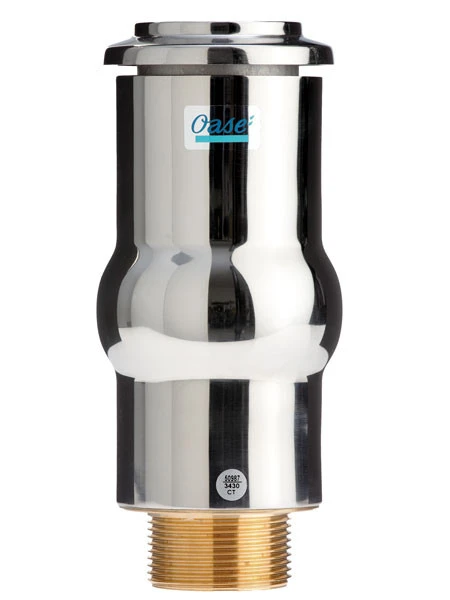 | Der OASE Schaumsprudler 55-15 E ist eine Luft-Wasser-Schaumdüse. Die 1 1/2″-Aufsatz-Düse aus Edelstahl kann wasserstandsunabhängig eingesetzt werden. Sie eignet sich besonders gut für Flachwasserzonen. Durch die intensive Verwirbelung mit Luft wird dem Wasser reichlich Sauerstoff zugeführt. Der OASE Schaumsprudler ist für verschiedene Wasserspielpumpen gemäss der nebensteheneden Tabelle geeignet. Die Höhe des Wasserspiels variiert je nach Pumpenleistung und Einstellung. Anschluss 1 1/2″ |