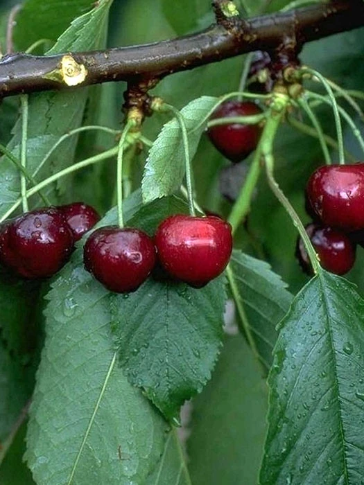 | Frucht: | Mittelgroße Herzkirsche; braunschwarz, glänzend; Fleisch weich, saftig, süß mit angenehmem Geschmack. |