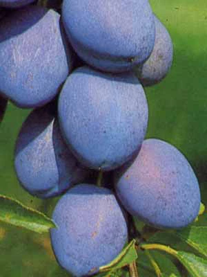 | Frucht: | Groß, langoval; violett- bis schwarzblau; Fleisch gelbgrün mit rötlichen Fasern, saftreich mit süßweinigem Aroma, gut steinlösend.</ |